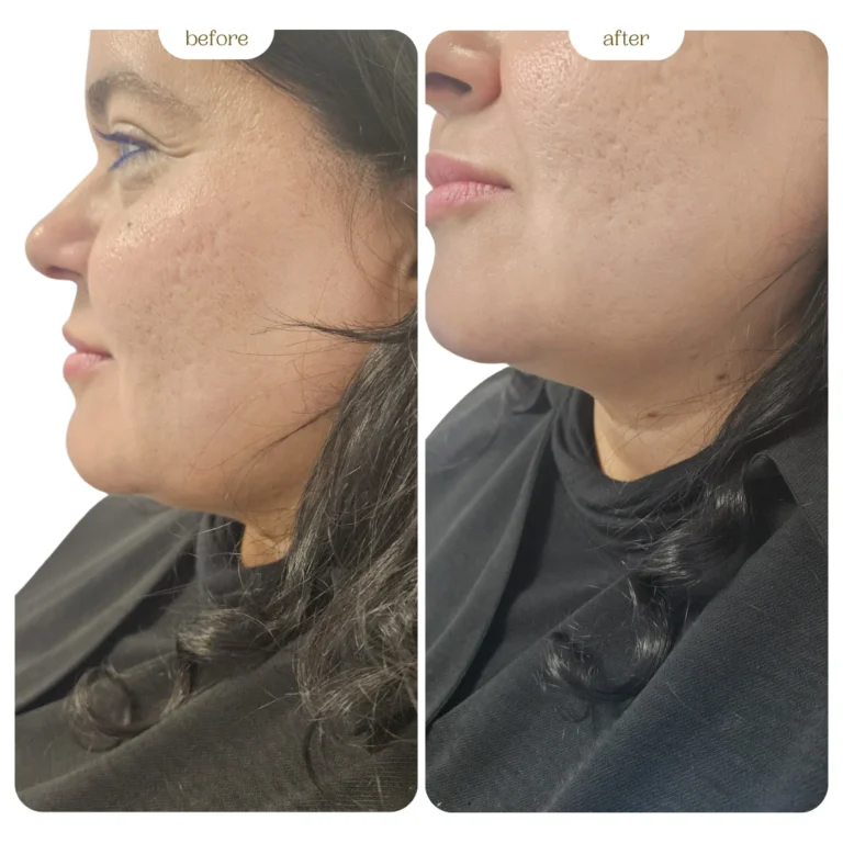 Phase II Skin Envelope Tightening with 3D HIFU: Once the fat volume is reduced, we perform a targeted HIFU treatment. This powerfully contracts the now “emptied” skin envelope, preventing laxity and ensuring a sharp, sleek transition from chin to neck